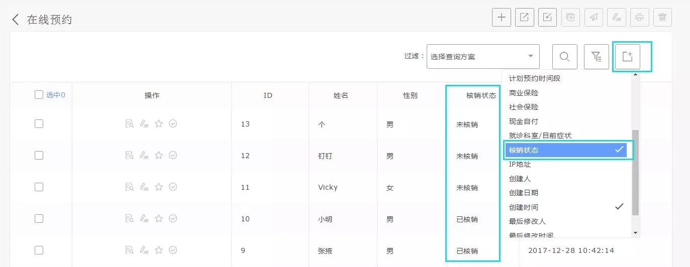 在表单数据页面,选择“显示表单字段”勾选“核销状态”,就能看到每条数据的核销状态,还可以根据核销状态进行数据过滤筛选,方便掌握整体核销情况,也可以根据核销状态导出自己需要的数据。