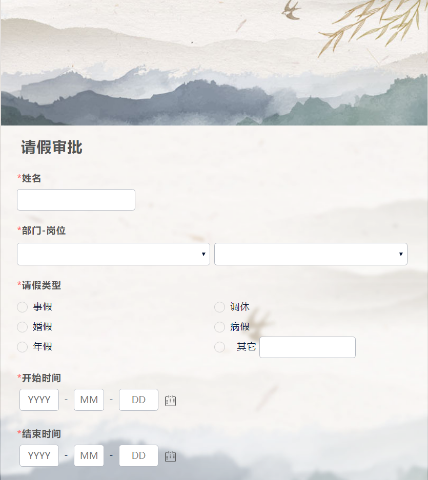 创建一张请假审批表单,并且设置表单流程。